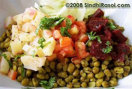 When Archana announced One D Salad, I thought I will come up with some good sort of salad, since I always have simple sliced cucumber, radish, beetroot etc as salad or at the most, the gujrati style cucumber-tomato-onion chopped salad. I thought I will search some good salad recipes and post them.Meanwhile Iboiled some moong to make moong parathas for my son.Now, to tell you the truth I just don’t like any parathas except aloo parathas. But I always eat whatever I cook for my son, just to depict a good impression on him, that its not good to fuss…