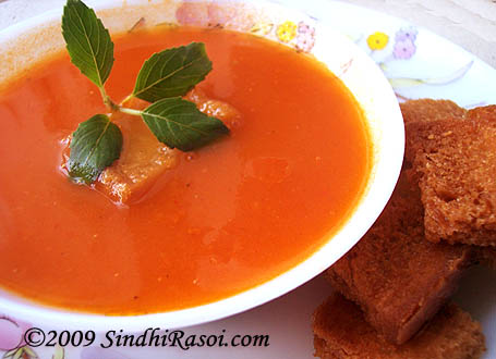 The recipe of this wonderful Tomato soup is highly inspired by Mansi’s Restaurant style tomato soup. Ingredients: Tomatoes (red and ripe) 6-8 ( I used 7 medium sized as seen in pic) Onion 1, finely chopped 3 cloves 3 -4 black pepper corns 1 Kamaal Patt (Tej Patta) 5 cloves of garlic 1/2 inch of dalchini or even less (optional if you don’t have it) 1-2 tsp of butter or more Salt as per taste Red chili powder less than 1/4 tsp (or adjust as per your taste but always add red chili powder after whole soup is ready)…