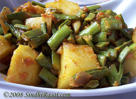 Guaar or gavar or Cluster beans, is one green veggies that my son is not very fond of. Still when I add potatoes to the guaar, he eats it without any fuss. Ideally Sindhi style Guar is made by first boiling the guar in an open pan, till soft. It is then mashed well by pounding with a whisker having a flat base (mandiyaro). A tadka of ginger garlic is made in a pan/ spiri to which tomatoes and spices are added. Once cooked, mashed beans are added and cooked further. The dish is little pasty or mush like. I…