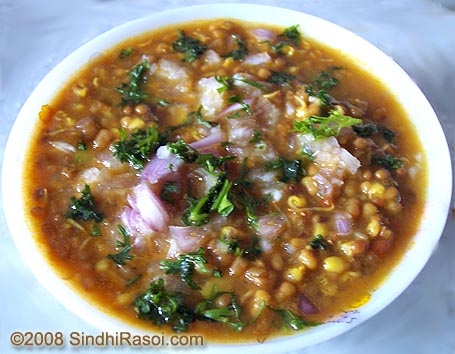 Print Matki (Moth beans) Moth beans cooked in onion curry, makes a tasty dal dish Ingredients Matki (moth beans) 250 gm Onion 2 small Tomato 2 small Green chillies 2 Ginger Garlic 3-4 cloves(optional) Turmeric powder ¼ tsp Coriander powder 1 tsp Garam masala powder ½ tsp Salt as per taste Oil 2 tsp Coriander leaves and dash of lemon juice for garnishing Method Pick, wash and soak matki for few hours (5-6) Take some oil in pressure cooker, add chopped onions and saute it till brown in colour Now add chopped/grated/pureed tomato and saute it for few minutes Add…