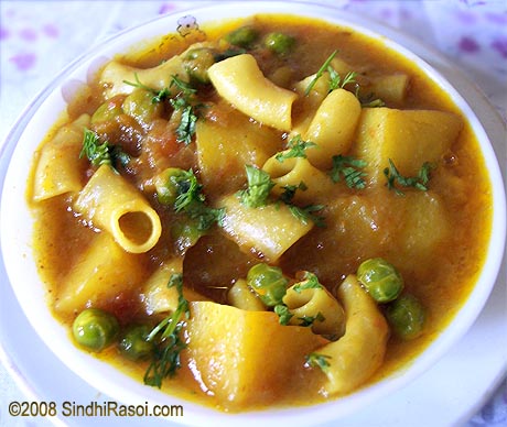 Print Macaroni peas patata Prep time: 15 mins Cook time: 40 mins Total time: 55 mins Serves: 3 Macaroni and potato curry Ingredients Onion 2 Potato 2 Macaroni a handful Peas (matar) as many preferred Tomato 2 small sized Green chillies 2-3 Ginger Turmeric powder ¼ tsp Coriander powder 1 tsp Garam masala powder ½ tsp Oil 2 tspn or more Method In a pressure cooker, put some oil and add chopped onions Saute them till brown in colour Now add chopped tomatoes and saute them further Now add just little of water and close the lid of pressure cooker…