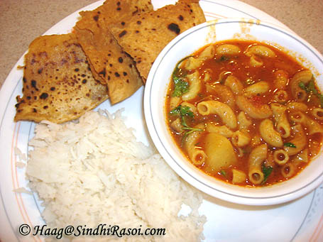 Macaronis got infused in Sindhi Cuisine long back and still remains a hot favorite amongst us. The traditional Sindhi style of Onion Curry combined with the macaronis and Potatoes and dried lily seeds (Phool makhana or Phool Patasha), when served with traditional bhugha chhanwaran (Sindhi Style rice), make up a hearty meal. Today’s recipe is slightly different from the way Sindhis generally make a curry. Instead of browning onions, I made a paste of onions along with some other ingredients which was then cooked and flavored with herbs and spices. A style, highly inspired from Soybean nuggets curry recipe from…